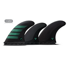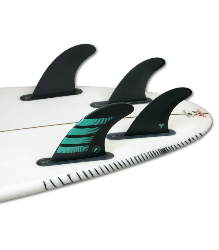 The Futures F6 Alpha 5 Fin Set features medium sized fins in Futures/Netplus Recycled Fishing net material with a rake template and balanced feel for increased hold through carves while staying versatile for all around conditions.