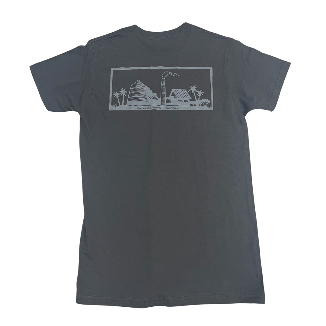 The Sugar Mill Tee with the mill printed large and proud on the back is a salute to the history of our beloved factory, next time you're on island stop by the old mill & check us out!